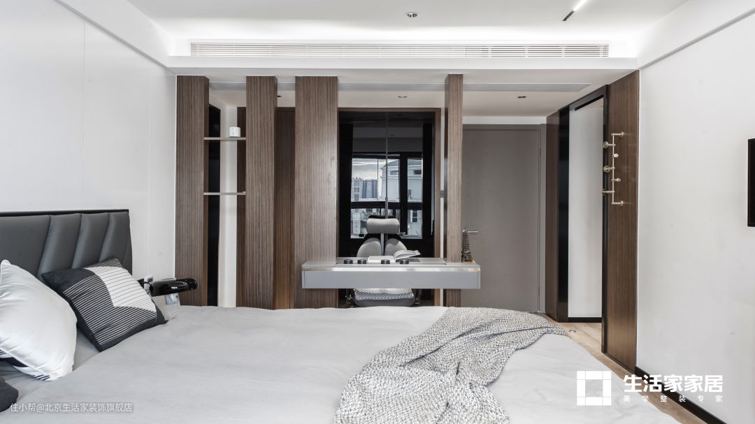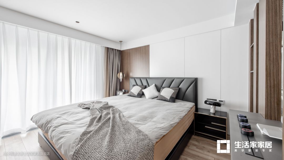 白色和原木色混搭,让主卧整体风格显得温暖安静。