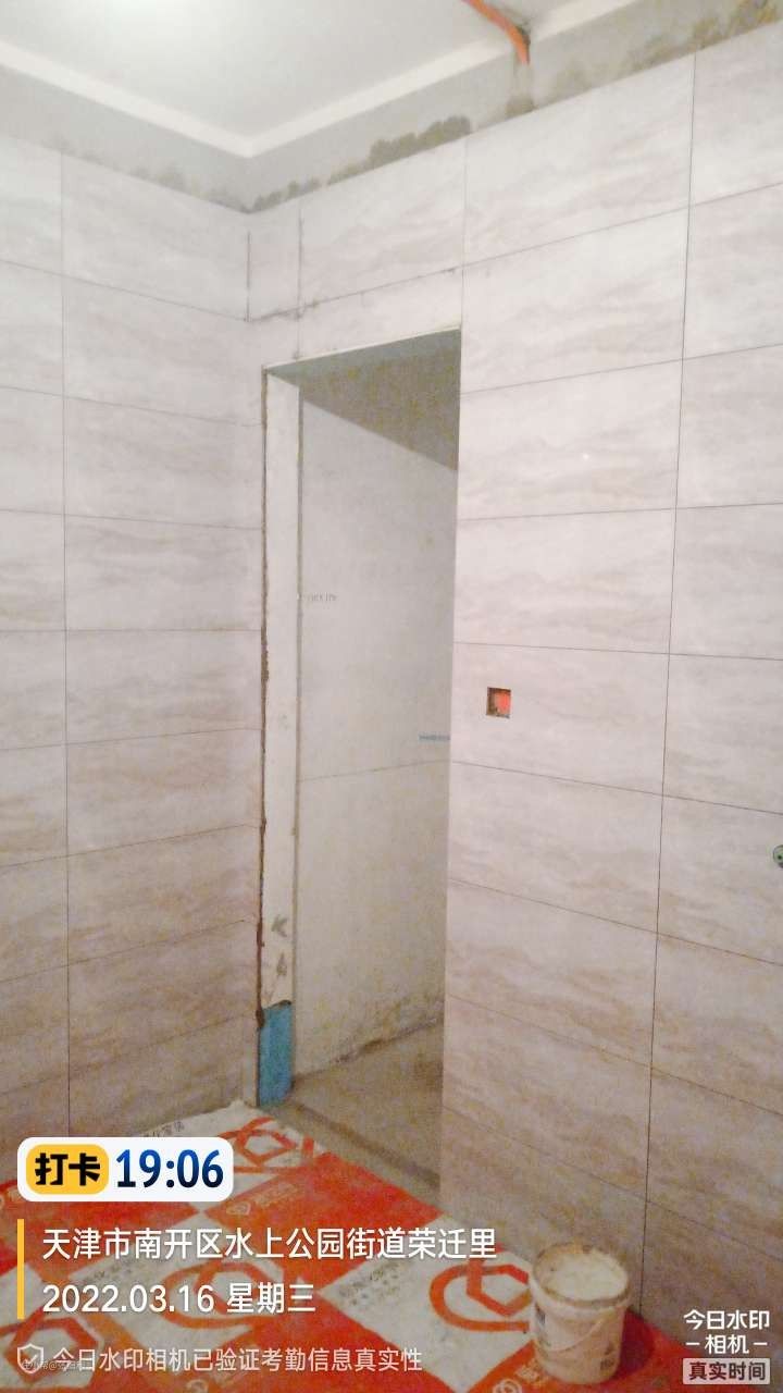 墙砖施工前有很多准备工作,先对瓷砖进行泡水,至少两个小时;墙面检查是否有空鼓掉沙现象,先对基层处理,洒水湿润,然后排砖,把不是完整的砖尽量赶在墙角位置。
