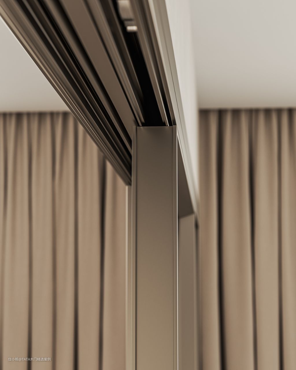 设计解说👉:整体外观简洁大气,视觉上非常通透。边框做到16mm厚,同时做了一个斜边设计,最窄的看面为6mm,从视觉上体现更极简的感觉。2.0壁厚铝型材,强度更高,不易变形。采用极窄边框,推拉门上承重无地轨设计,使产品简约到极致。