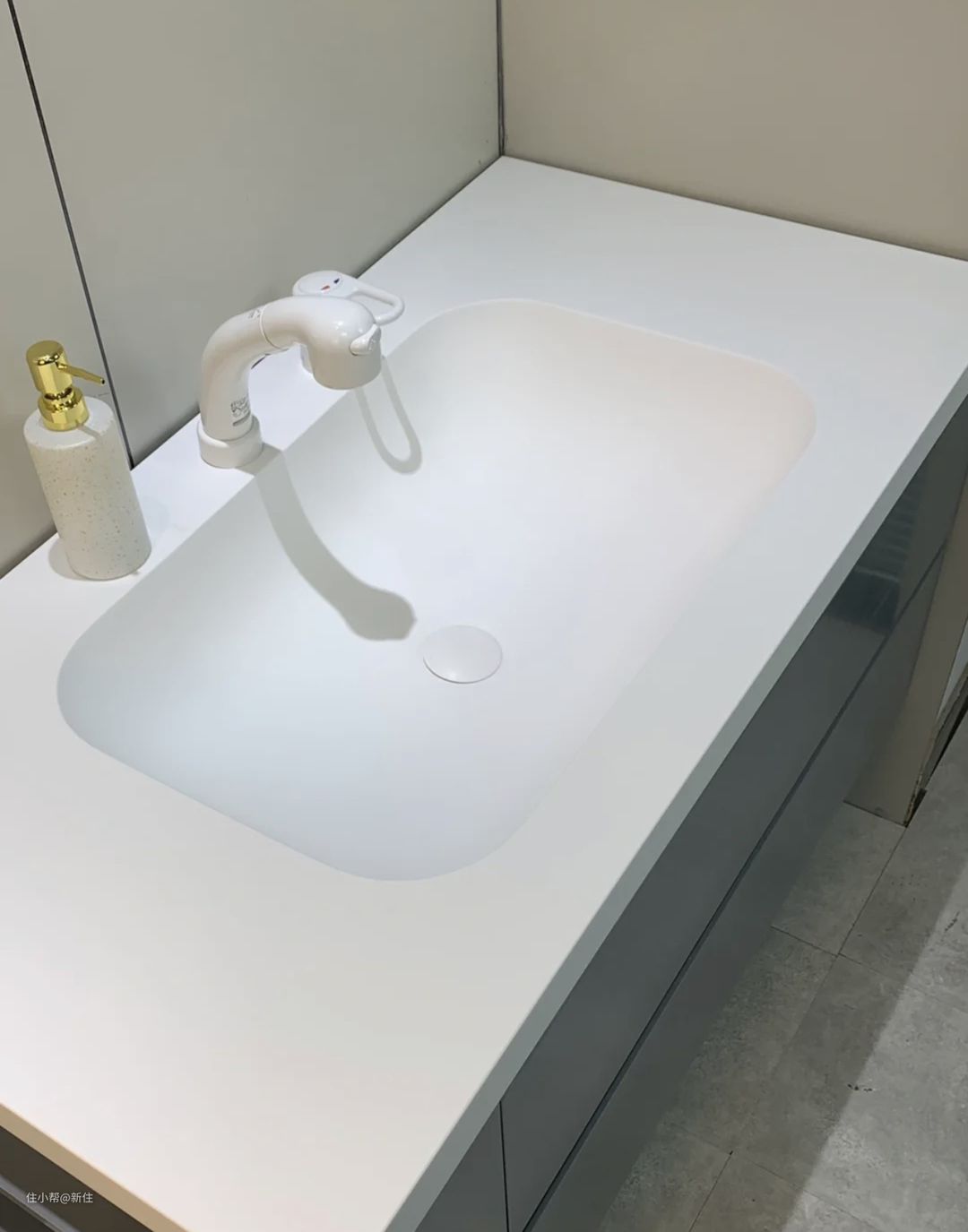 预算充足,可以上可丽耐的一体盆,其实性能甚至不如陶瓷盆,可它在颜值上,多了一种选择。