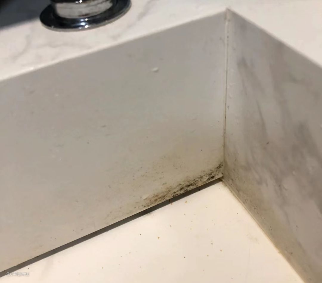 此外,岩板台面+陶瓷盆这样的组合也不建议,因为岩板容易碎,而陶瓷盆偏重,做台下盆会掉落,而做台上盆呢,又有卫生死角,玻璃胶发霉问题严重。