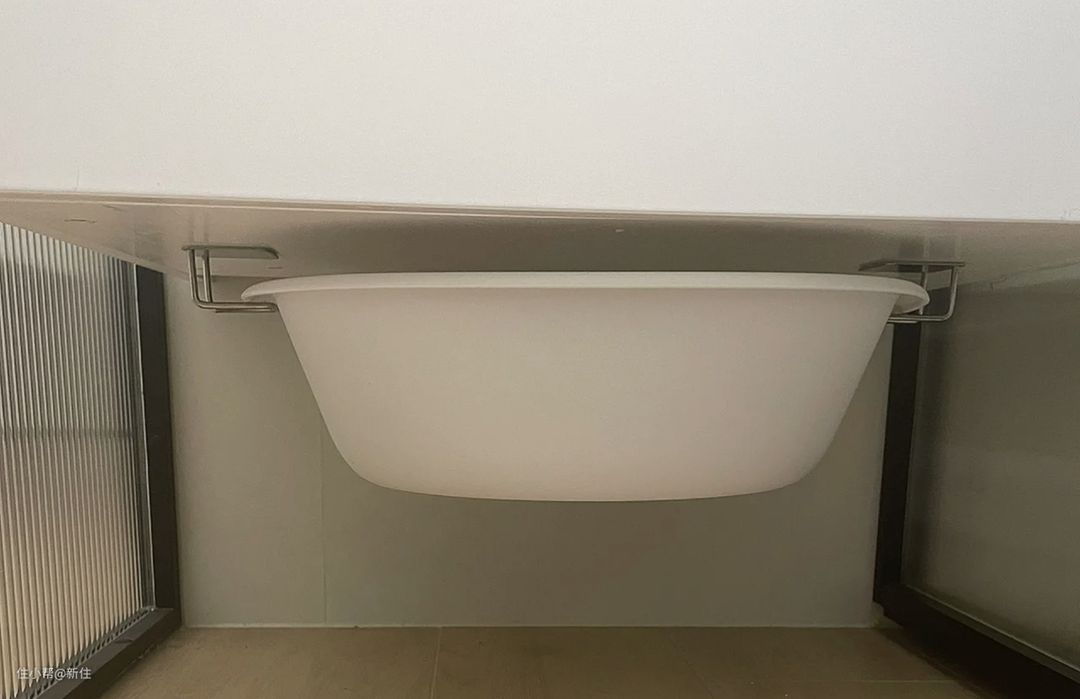 而且美观度上还提升,用设计师的话术来讲就是:悬空的柜子,可提升整个空间的轻盈感、视觉上,也能更显卫生大。
