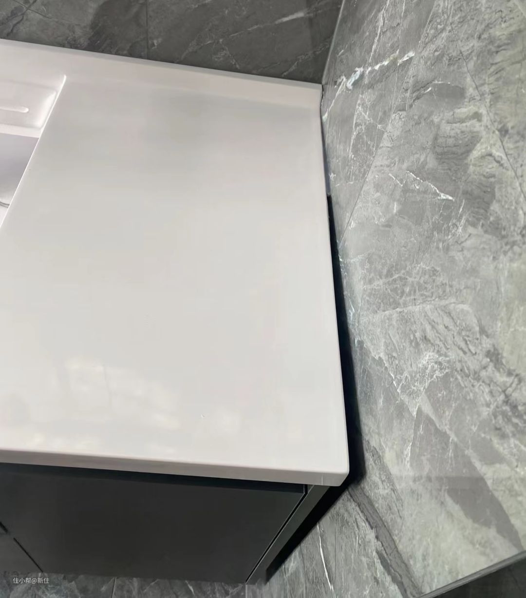 需要再多啰嗦一次:在装浴室柜的墙面做一下找平找方,否则后面容易出现:缝隙大、前后缝隙宽度还不一样的情况。