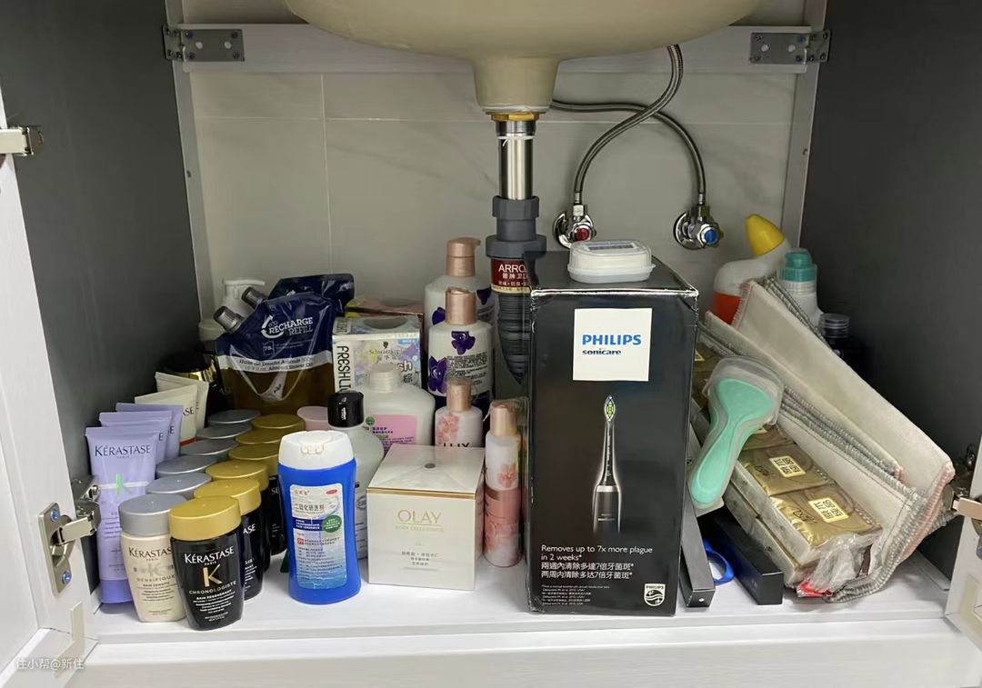 从实用的角度来讲,底部,还能收纳浴室凳、脸盆之类的。