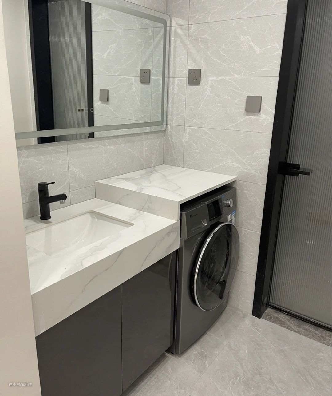 台面高度80-85厘米,具体根据自己的身高装,莫要把洗衣机往浴室柜下面强行塞。