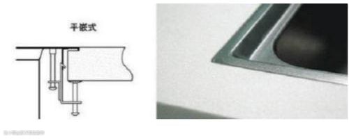 台中盆又叫做平嵌式,就是按照水槽安装边的尺寸,在橱柜的台面打磨一层,把水槽跟台面作成一个平面。