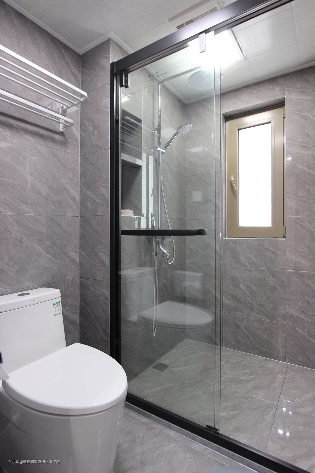内卫采用干湿分离设计,玻璃隔断会阻挡淋浴区的水汽蔓延到干区,还能兼顾采光、通风等效果。