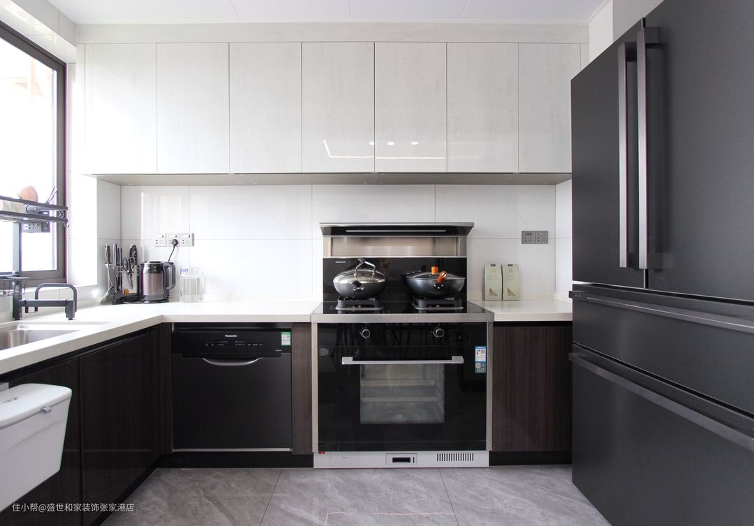 L型布局设计,让“洗切炒”动线更合理,真正做到洗菜做饭两不误。