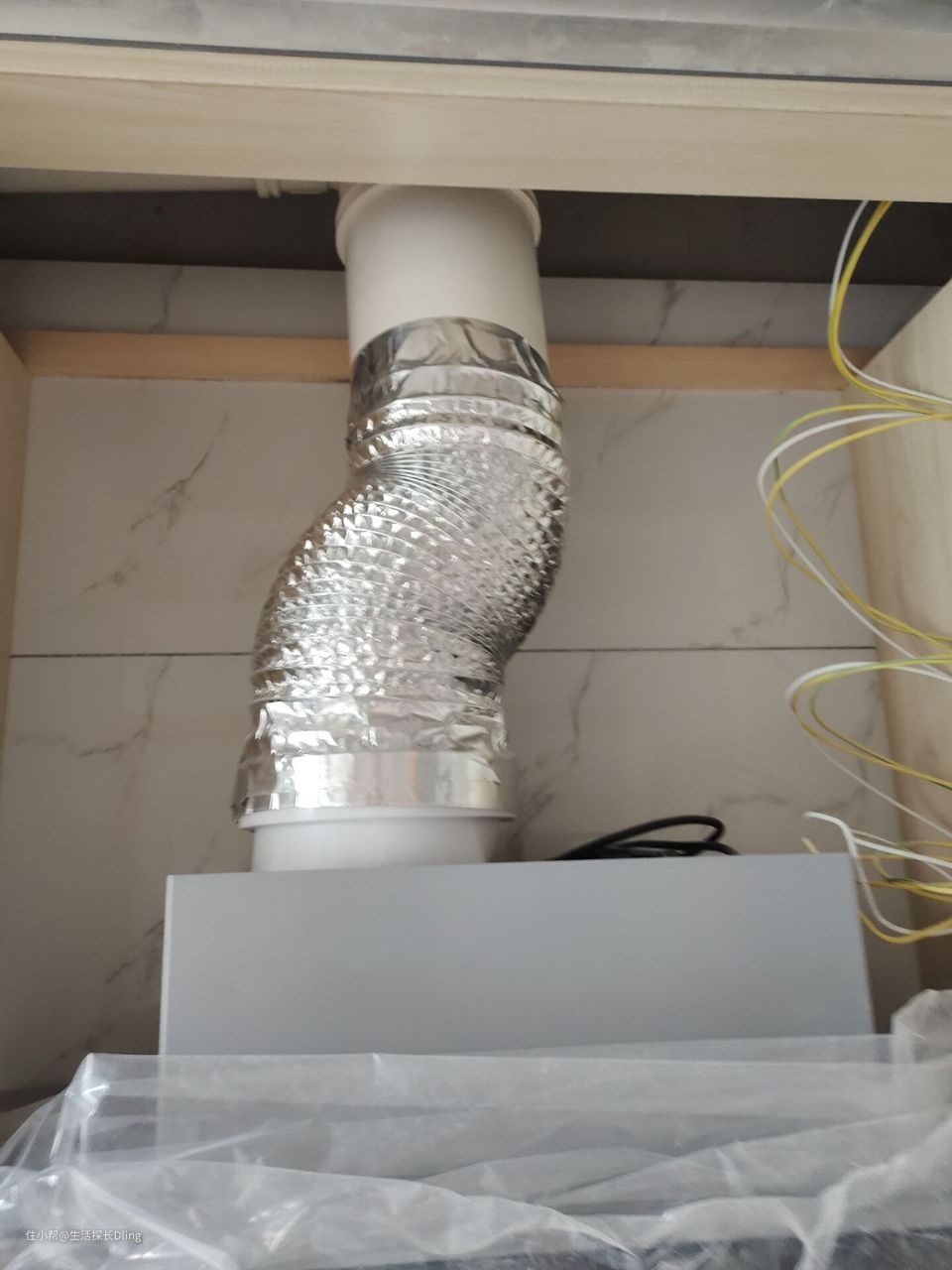 2.烟管——油烟机到烟道之间还有一段距离,这段距离需要用一根粗粗软软的烟管进行连接。这根管在安装时,需要注意保持水平,可以向上扬,但一定不要向下垂,否则会在最低点积累一汪油。更不要弯折,这会导致烟排不出去。