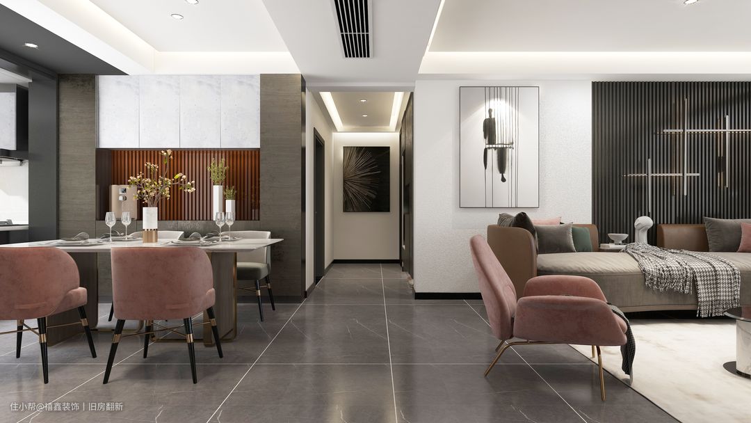 【导语】这套120平的老房改造,整体户型不太规则,设计师通过三面墙体的改造,打造了舒适的三居室,在现代简约的风格中,搭配上精致的软装,让空间闲的更加舒适上档次。