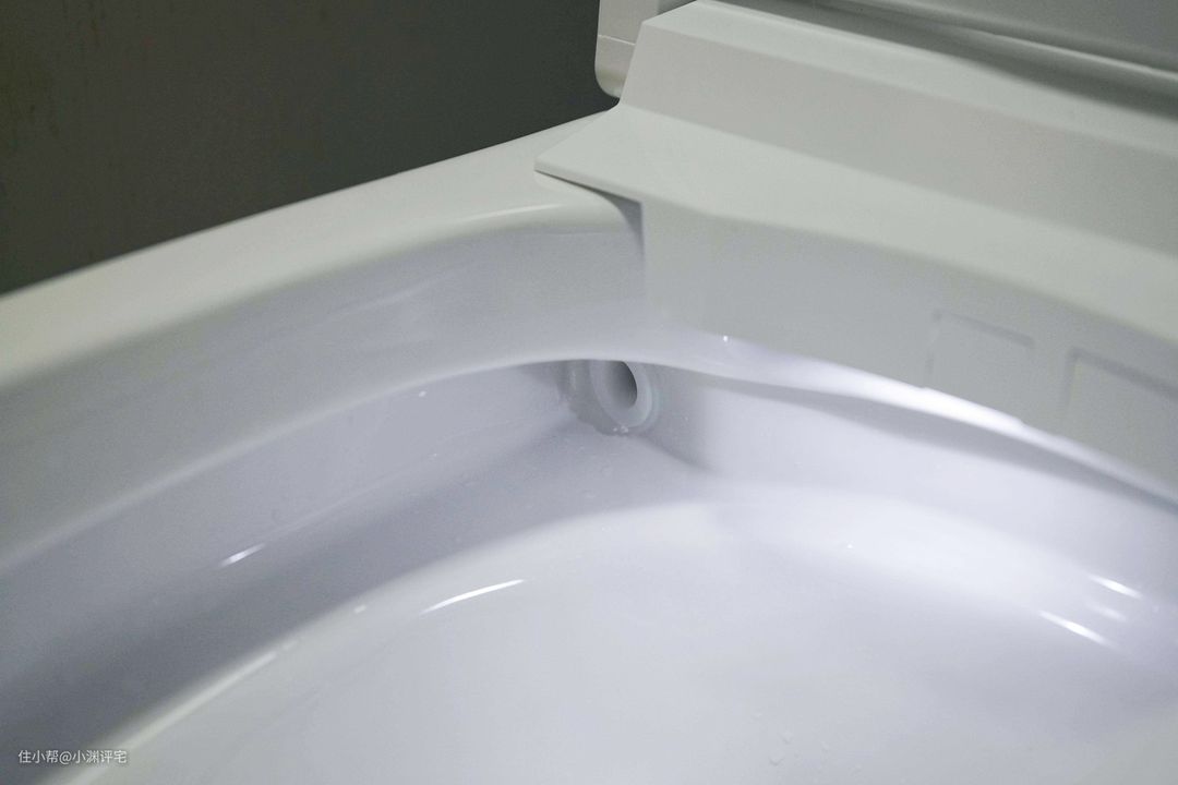 1.釉面范围,虹吸式马桶本身有一段比较长的管道。这段管道的内壁需要做釉面,否则表面就会很毛糙,容易挂住很多脏东西,导致管径变细,进而引起各种各样的冲水问题。所以在选马桶的时候,一定要把手伸进去,摸一摸出水口里面有没有釉面。