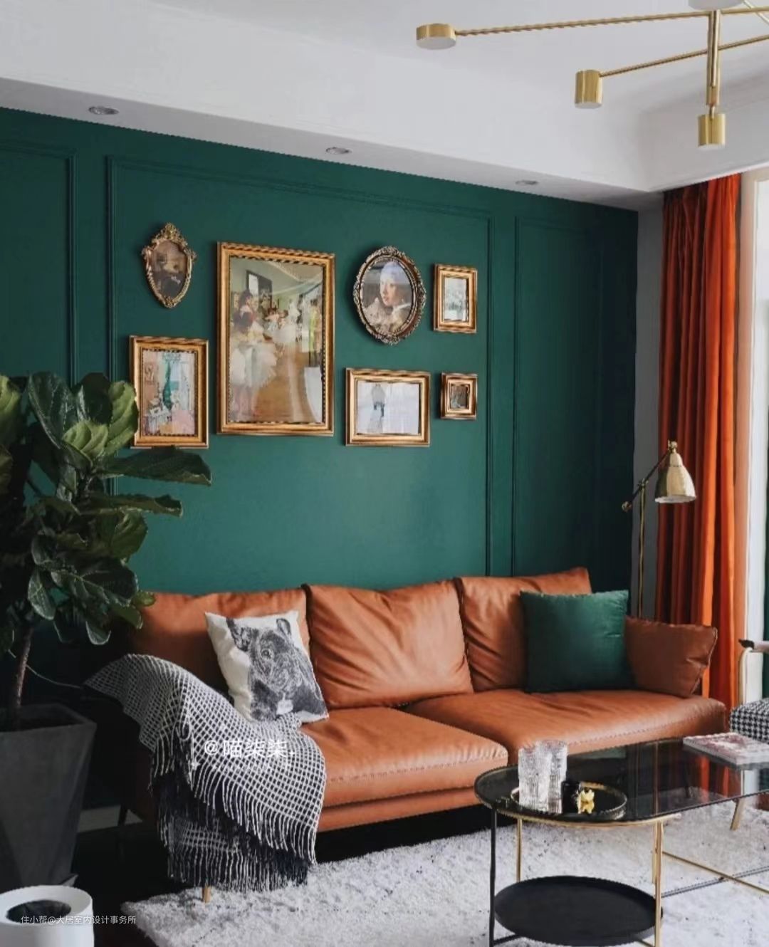 轻奢风格在色彩搭配上较为大胆,经常会出现比较重的色彩,如墨绿,蓝色等。