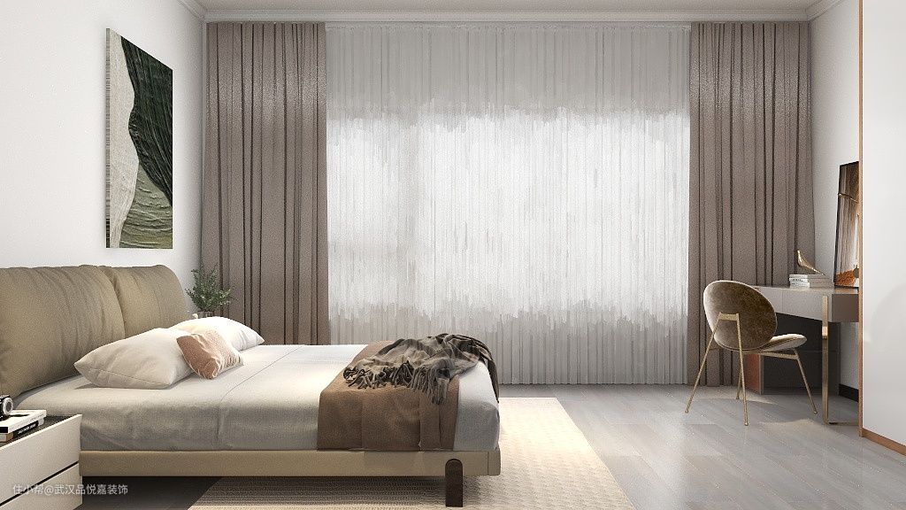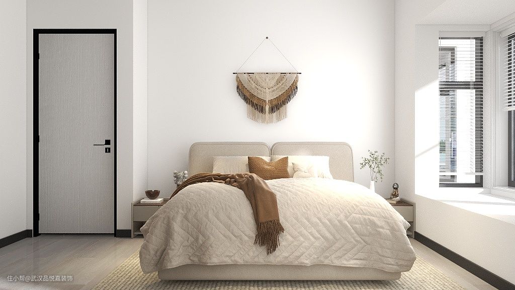 纯白色乳胶漆搭配艺术挂饰,显得整个卧室不再单调;大大的飘窗,朝向和采光都非常好~nice