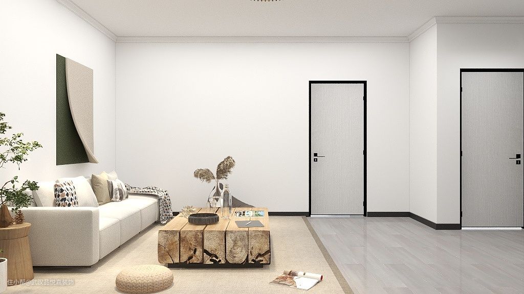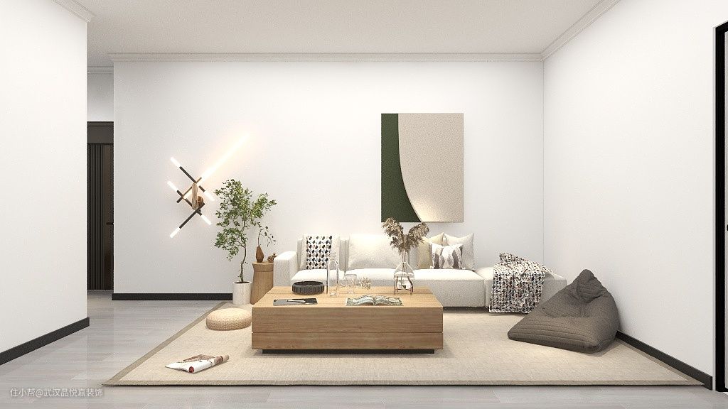 客厅采用开放式无电视背景墙设计;墙面线型灯搭配落地式木色系茶几;给整个客厅增添了几分温馨的色彩