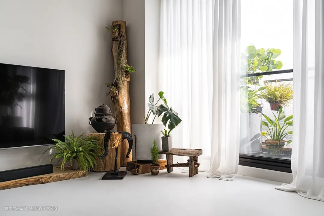 简单的电视背景墙被装饰得像一幅有灵气的画,随着阳光的移动自由活动。