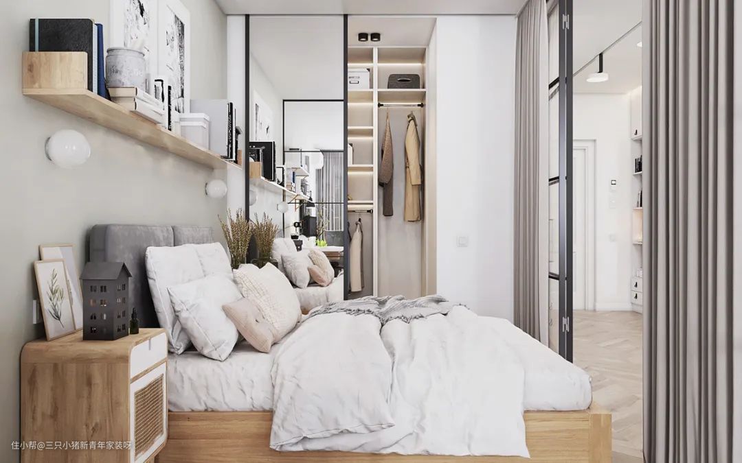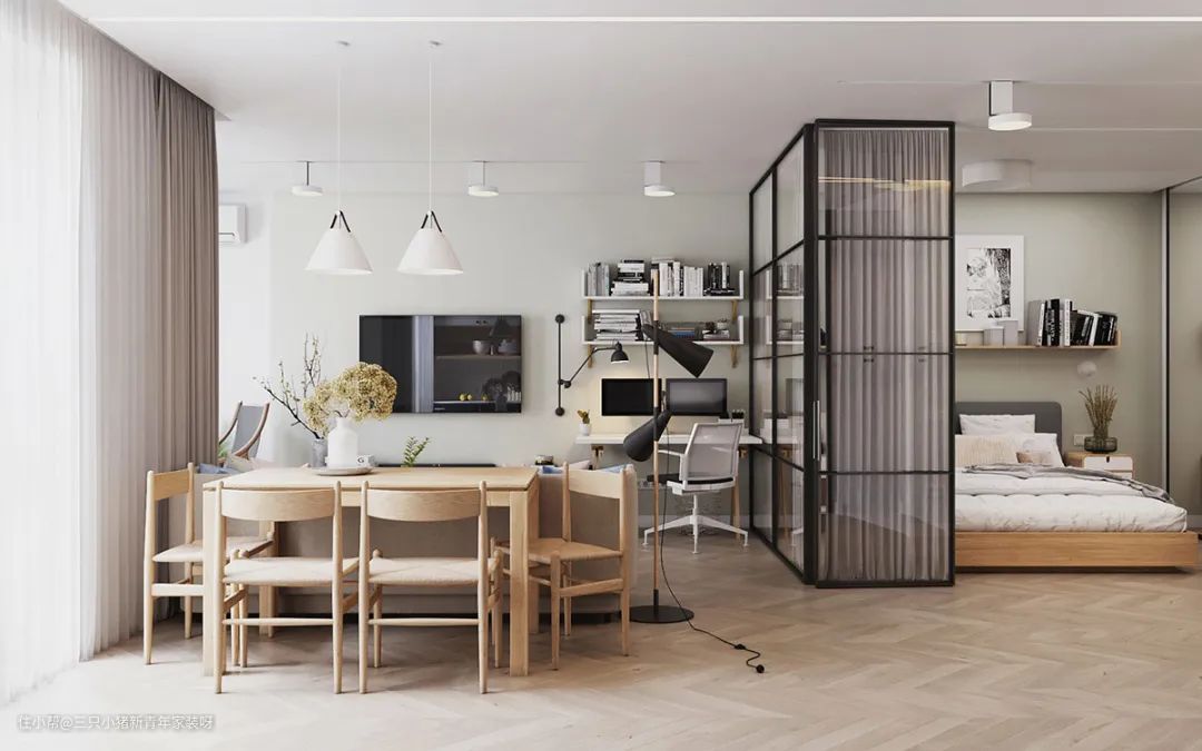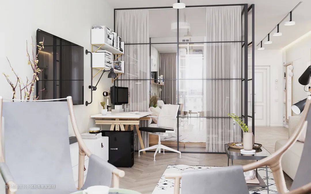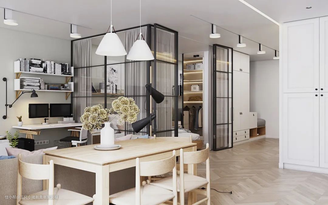 一面玻璃居然可以隔出一间房,60㎡小公寓这样做采光好到爆