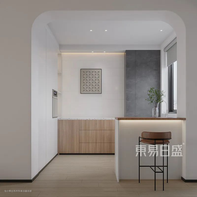 厨房去繁从简,隐蔽式烤箱,洗碗机隐藏在柜子里,合理的区域规划,厨房简约美观。