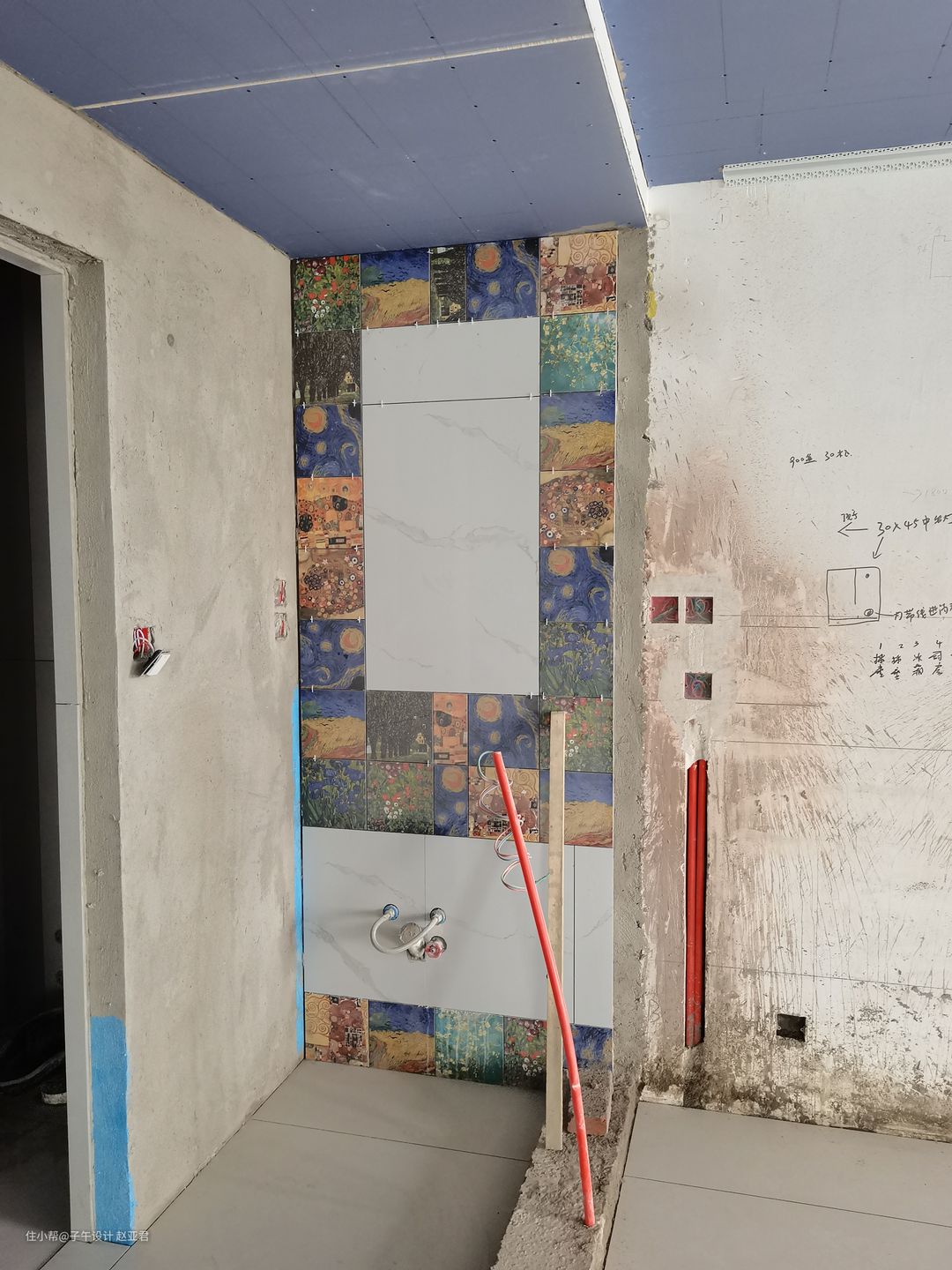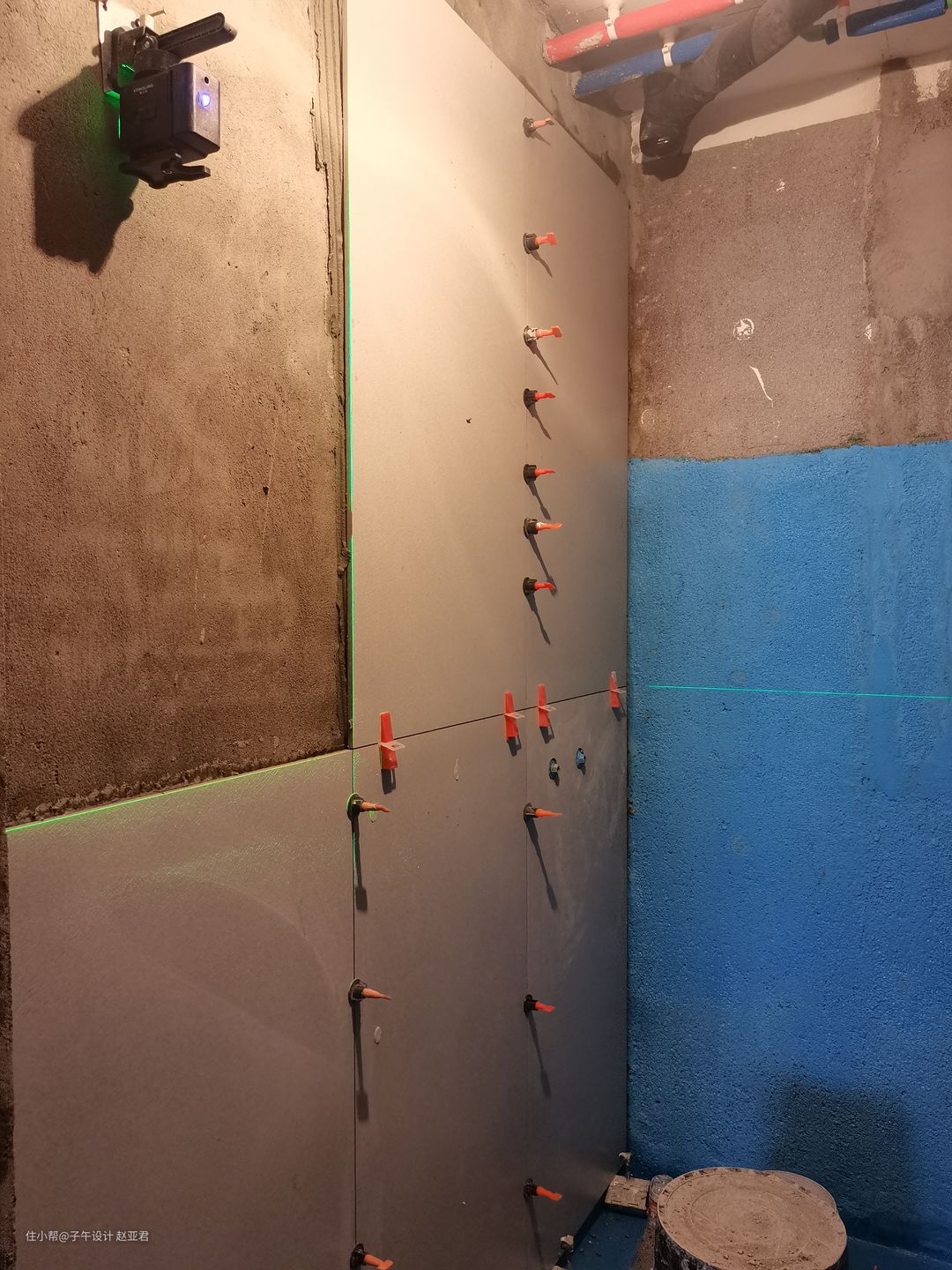 2、全瓷砖上墙,必须使用粘接剂进行薄贴,不要看网上所谓省钱的铺贴方式,不靠谱,瓷砖最牢靠的铺贴方式就是粘接剂薄贴;