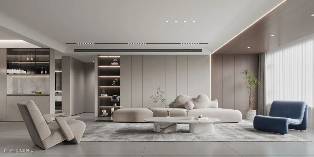 柔和的中性色调以微妙的莫兰迪色点缀,让居家空间保持干净清爽的感觉,不像鲜艳的彩色那样极尽浮夸,也不会带给人不易接近的“性冷淡”风格,带给人视觉的完美平衡。