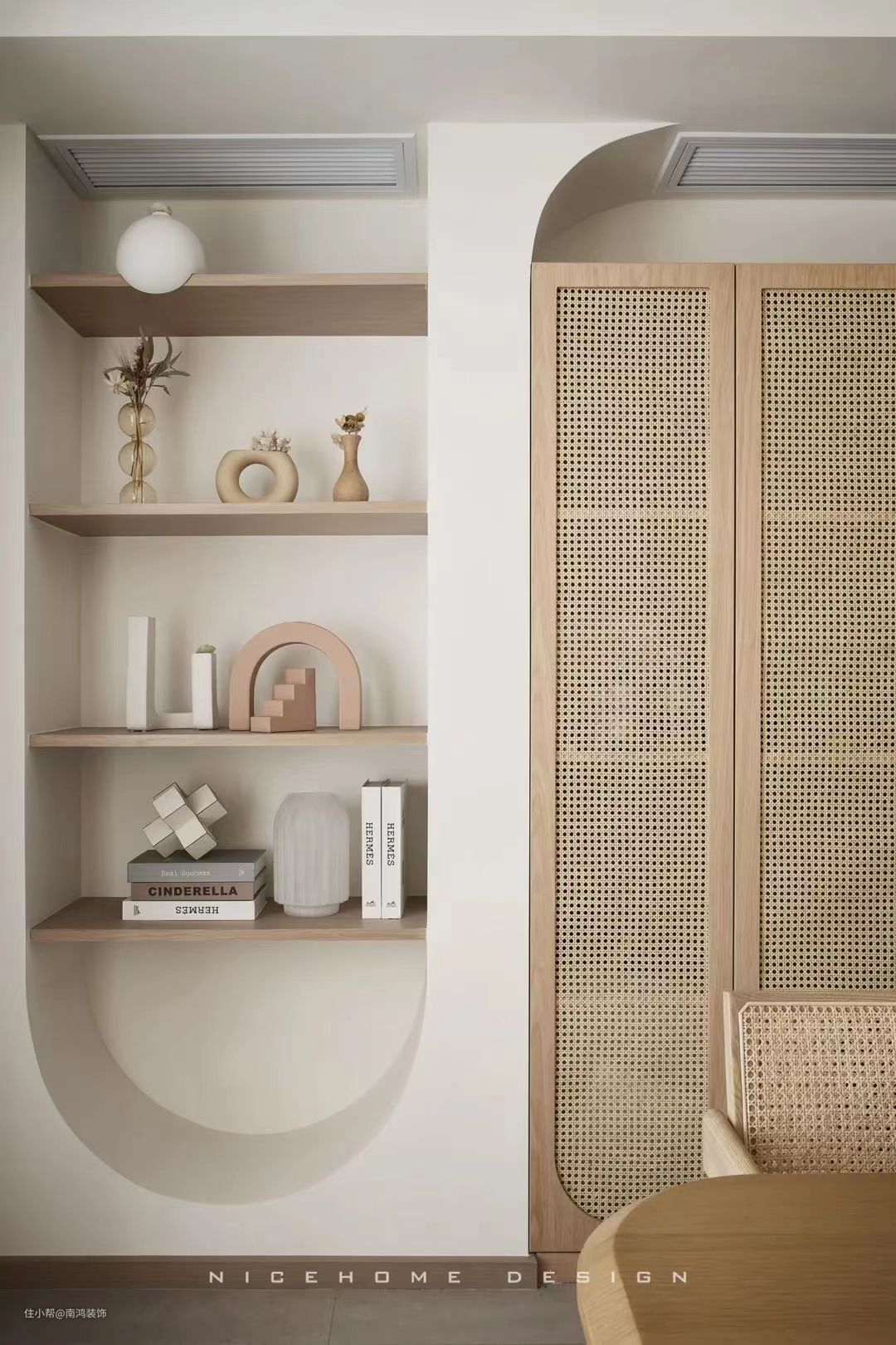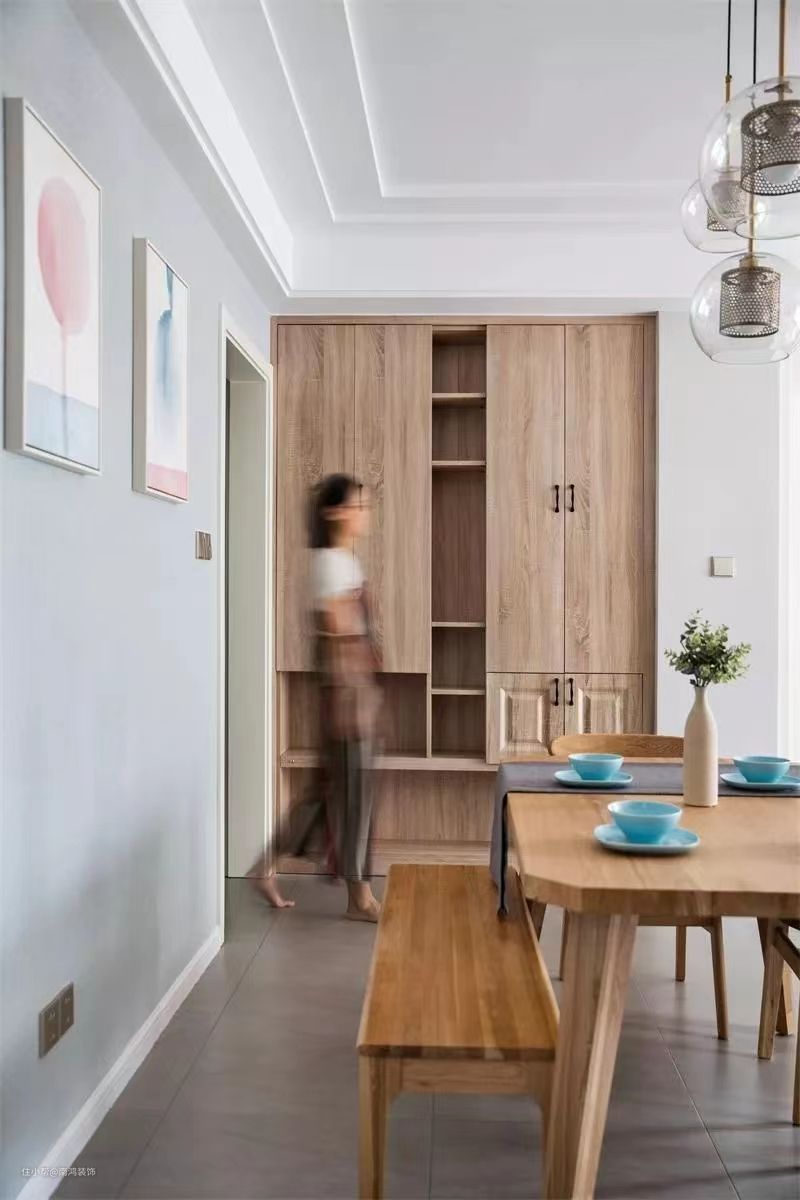 要打造极简原木风,也要把关键词“极简”进行到底,就不要在地面用轻奢风的带有花纹的瓷砖,甚至波打线,极简的纯色瓷砖或者木地板会更统一;也不要随便在柜子上增加轻奢风的金属玻璃门板,所以一定要在找到方向之后,把每一个细节统一到底,避免搭配出来不伦不类,成了廉价的出租屋。