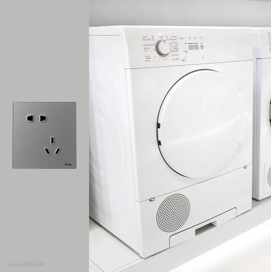推荐安装位置:烘干机通常出于便捷使用和晾晒的考虑,一般将插座安装在玄关、阳台或者杂物间位置,高度建议离地30cm。
