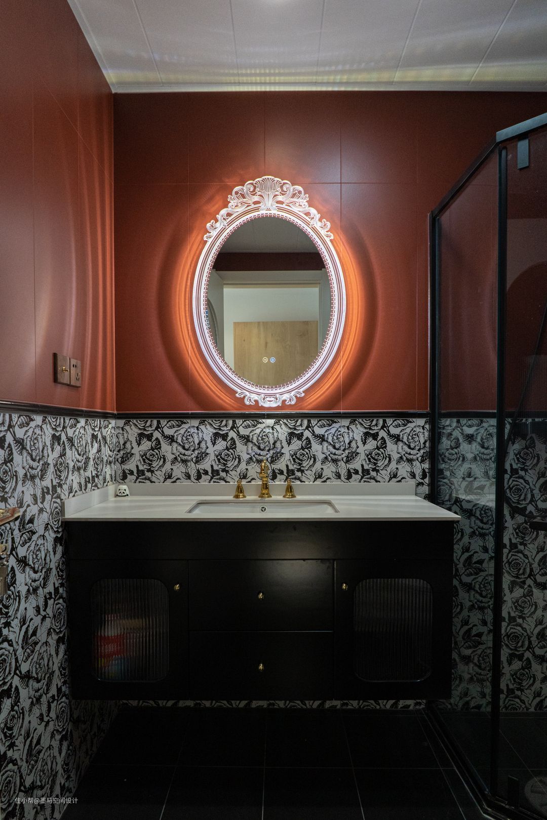 被偏爱的复古卫生间墨马空间设计2022-10-08主卫整体色调以红色和黑色为主,透露着一种优雅浪漫而不失格调的气质,复古元素的玫瑰花砖,提升了整体空间的艺术质感,张扬又内敛。上墙300*900红色平面砖,下墙300*300黑白玫瑰花砖,中间腰线是小欧姆线,更加小巧精致。主卫选了突显复古质感的开关,与主卫的风格相辅相成,格调一下就出来了!