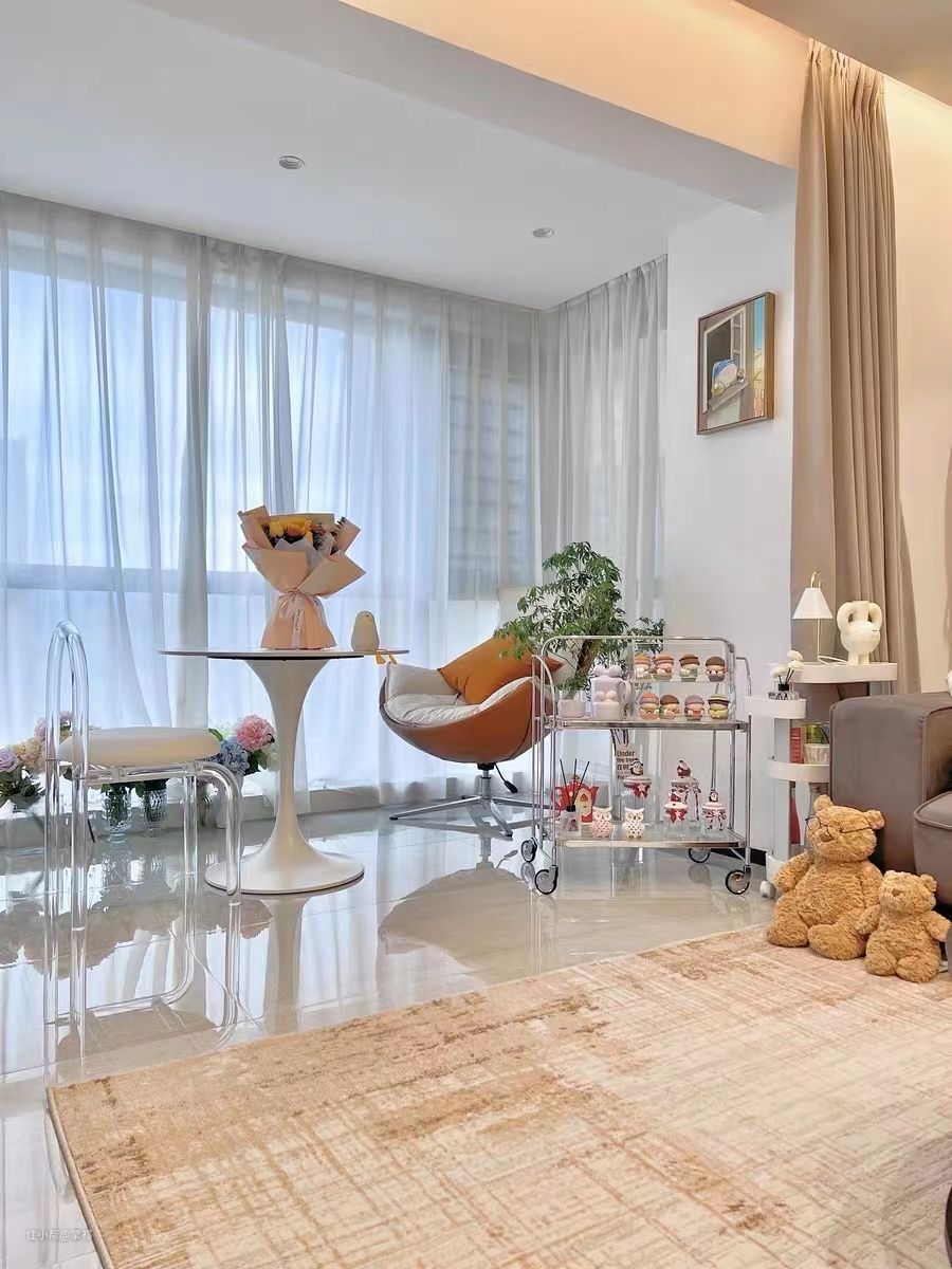 阳台处是艺术感极强的芬迪白石桌,显得高风亮节,坚韧不催。那弧形的琉璃柜和琉璃椅似母亲无微不至的关怀,柔和细腻。质感细腻,柔软的纳帕皮休闲椅,配合高回弹的海绵坐垫,宛若陷入云端,令人身心放松。