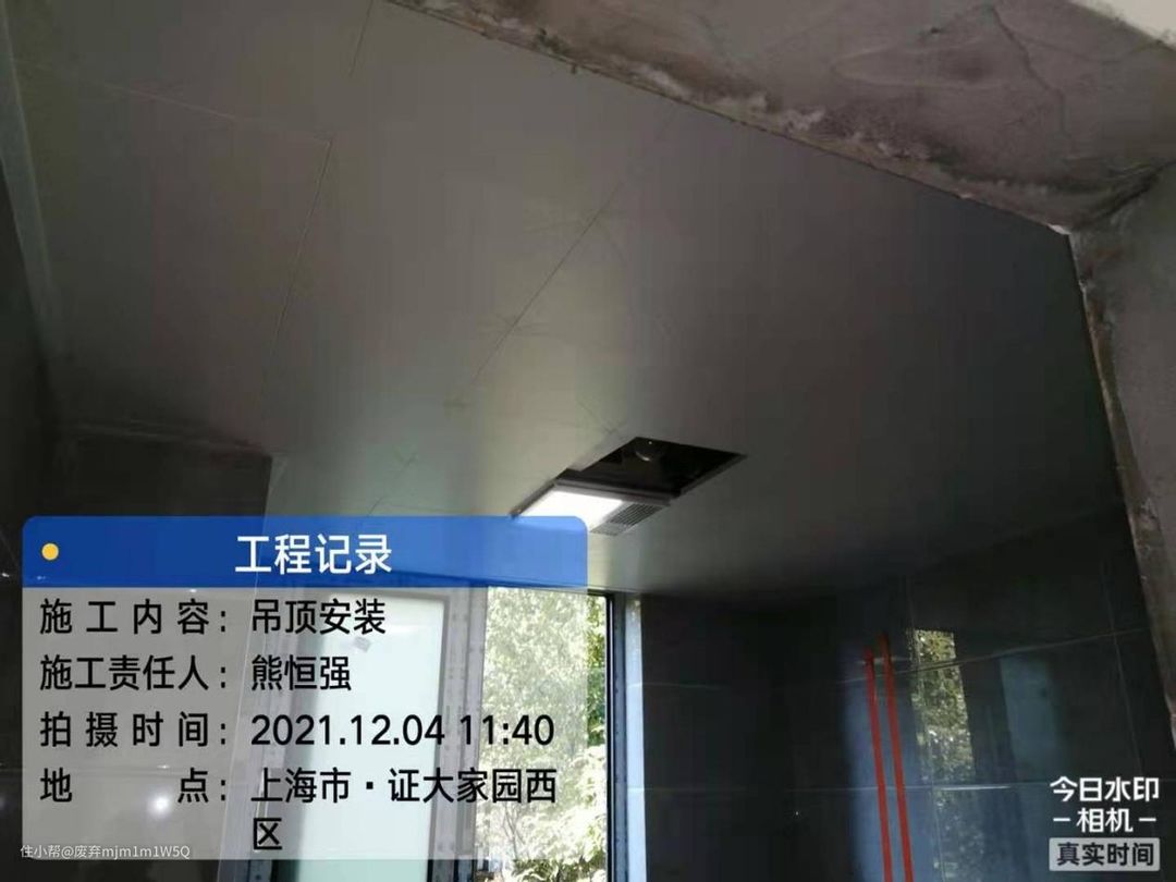 扣板安装完毕进行验收,主要观察四个角是否整齐,缝隙大小是否一致,平整度是否达标等等。需要注意的就是边角与墙面衔接的缝隙可以用玻璃胶封边,更加整洁。
