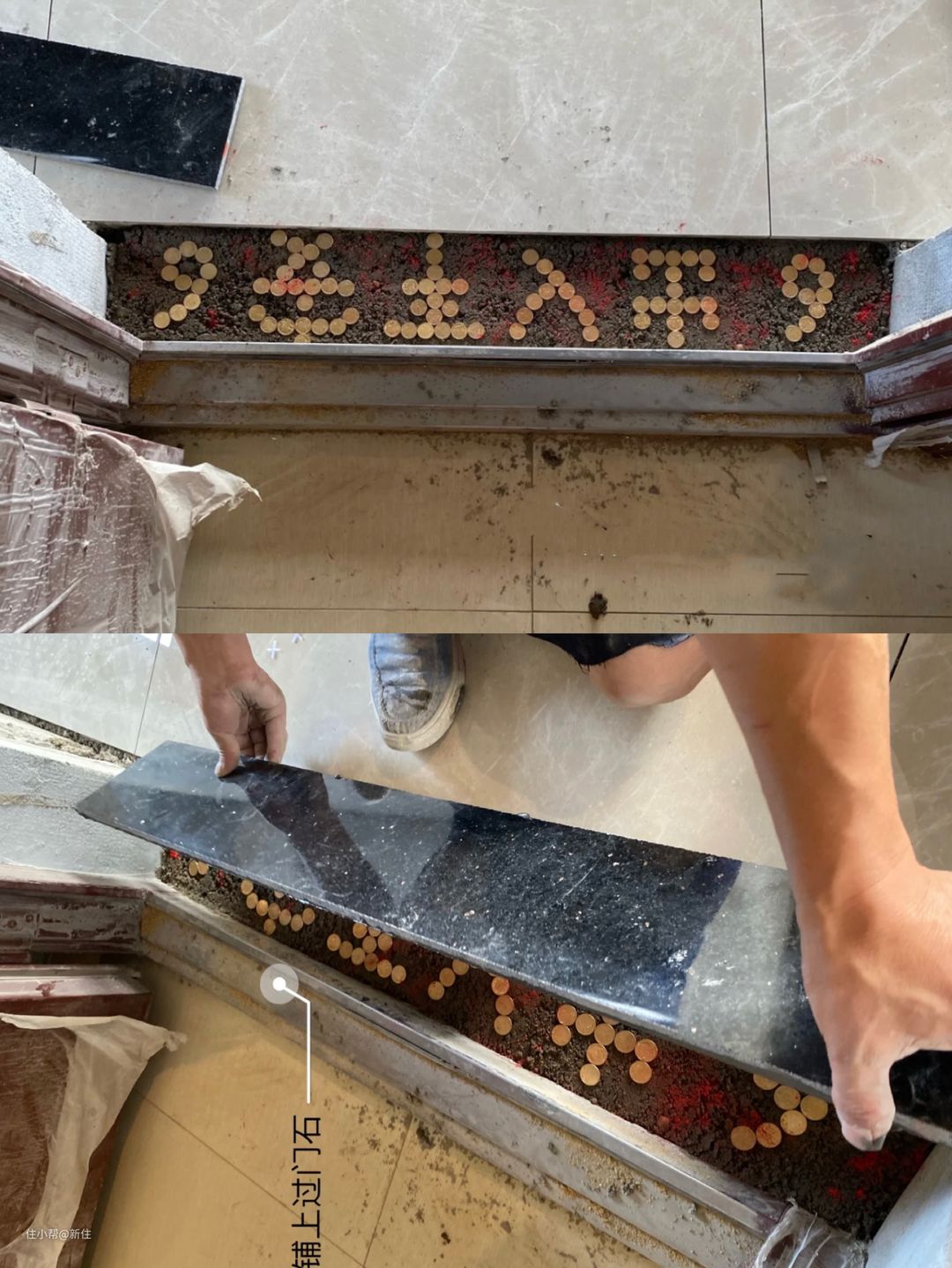 过门石的铺贴相对简单,所有的瓦工师傅都能胜任,甚至两个区域之间有高度差,还能通过过门石的角度、或轻微的底部打磨来调整,哪怕铺贴不好,也不会太明显。
