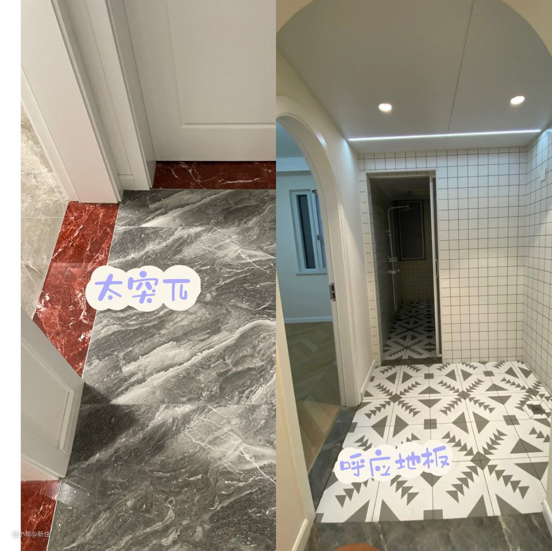 否则,单靠瓦工的经验,很容易整出区域过渡窄缝、墙角窄缝等问题,一旦出了问题,再去费神、扯皮、互相追责,也无法弥补不了自家翻车的损失,除非敲掉重铺,但费用增加的可不是一丁点了。