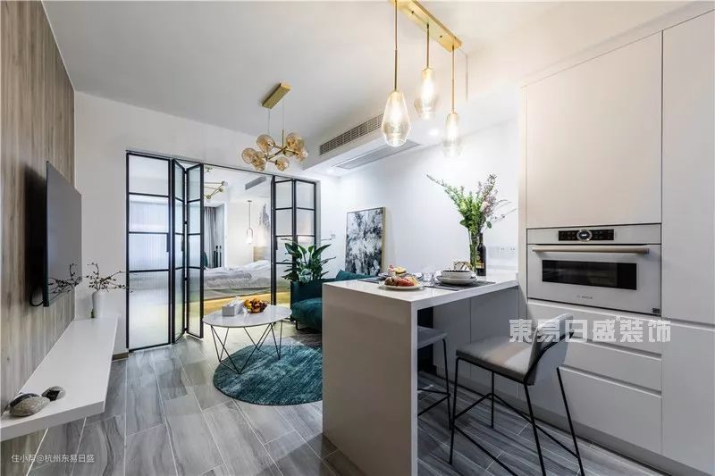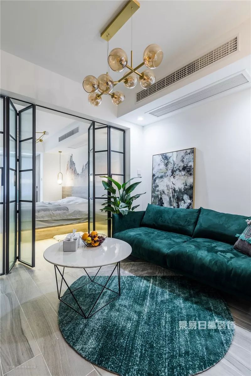 原木+清雅绿,慵懒生动小客厅~杭州东易日盛2022-10-09以墨绿酝酿氛围,搭配温润木质对立,再以几何线条环绕,展露出摩登的情调与悄然的诗意,电视背景墙左侧步入式的大衣帽间是每个女孩的梦想。此间灯光曼妙,绿叶些许,花开三两枝,勾画出慵懒而生动的生活模样。