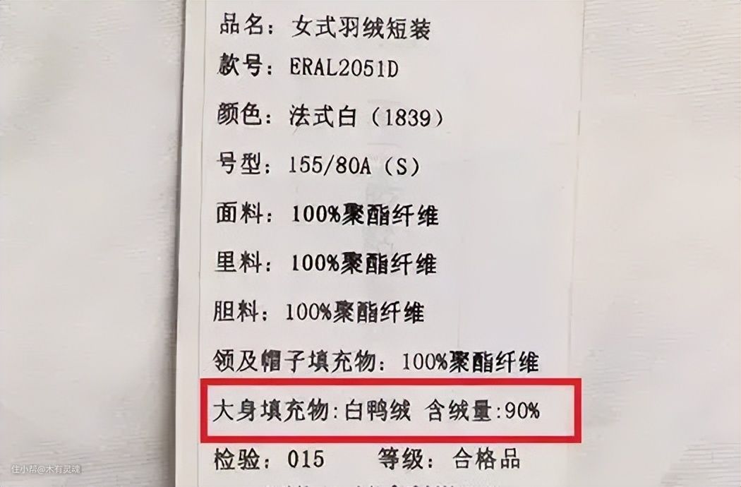可能有的小伙伴有点迷糊了,前面的充绒量不是说过了么,这里的指标含绒量其实是两个意思,指的是填充物里羽绒的占比,比如90%意味着有90%都是羽绒,剩下10%可能是化纤材料或者穷他填充物。