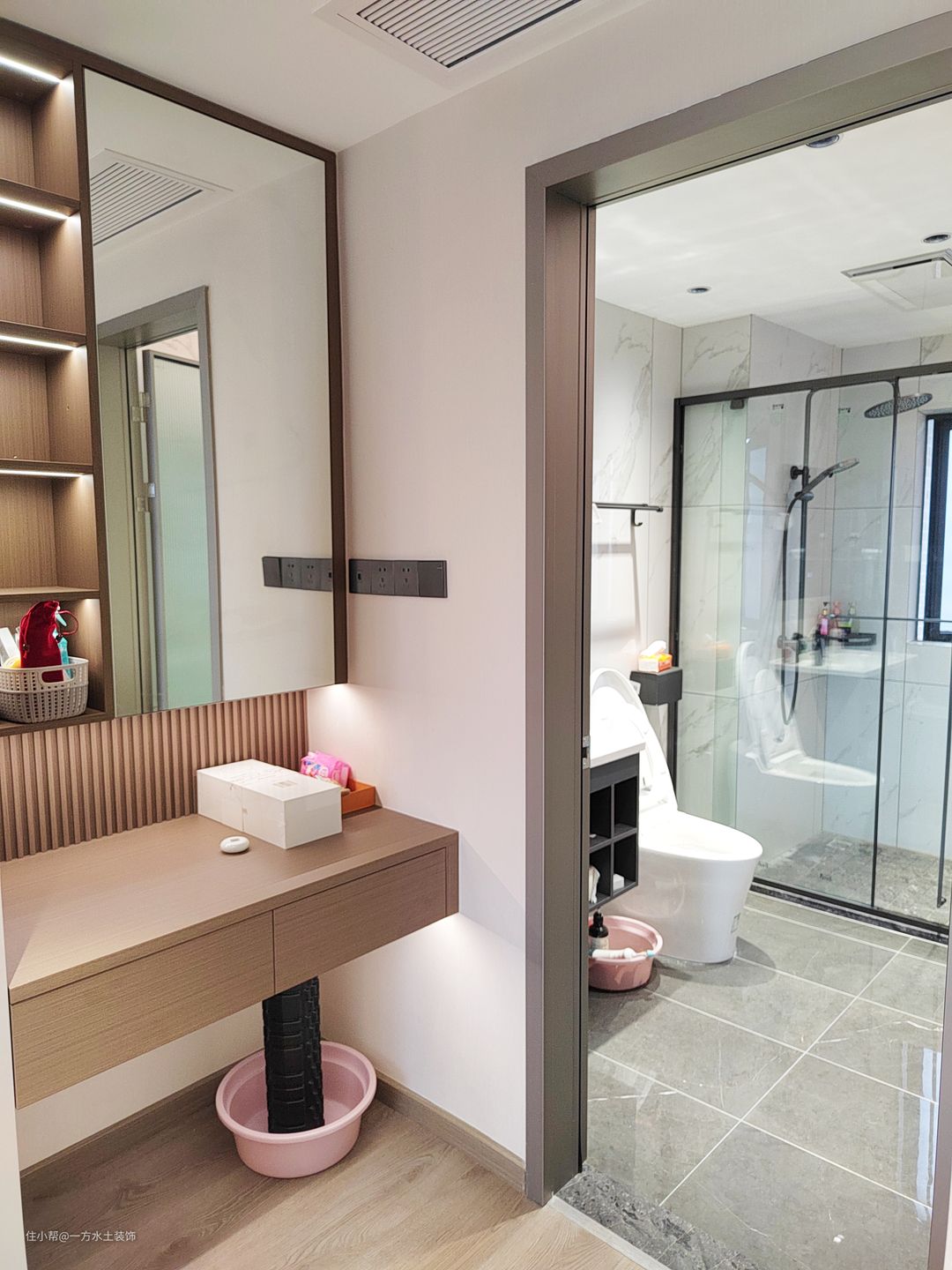 位于卫生间外面,洗漱、选衣、搭配和梳妆打扮之间的动线更明确,化妆要用水的时候就不用来回跑啦。