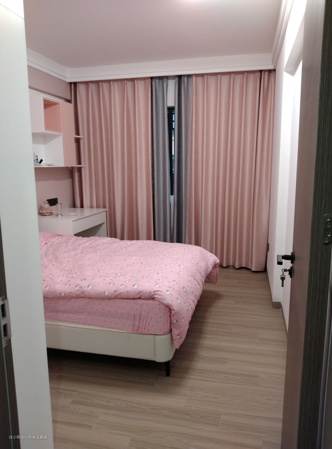 这个女孩房一片粉嫩:粉色的床单、粉色的柜子、粉色的窗帘,无处不在展示少女心。