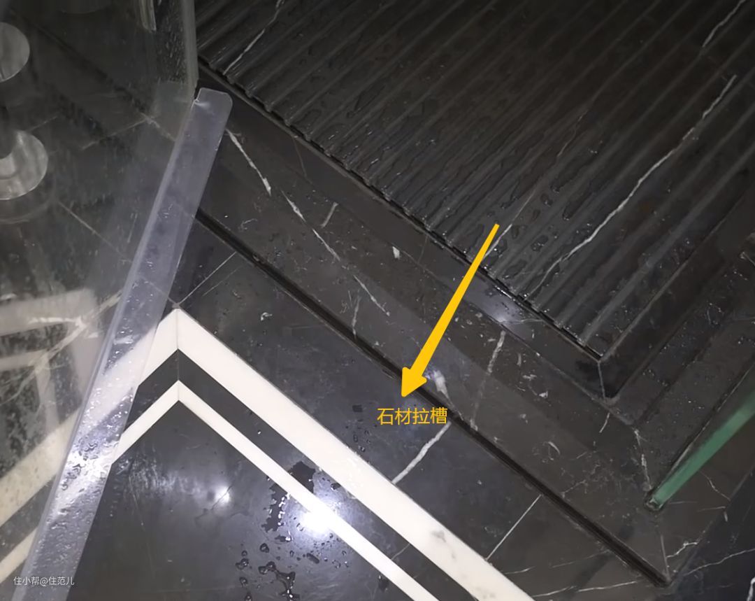 因为下水管自带S弯,地漏芯都可以不用装,一般酒店淋浴区地面为了防滑,都会做石材拉槽。