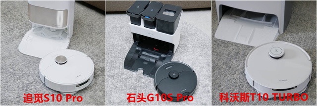 自左至右:科沃斯X1 OMNI、石头G10S、追觅S10 Pro