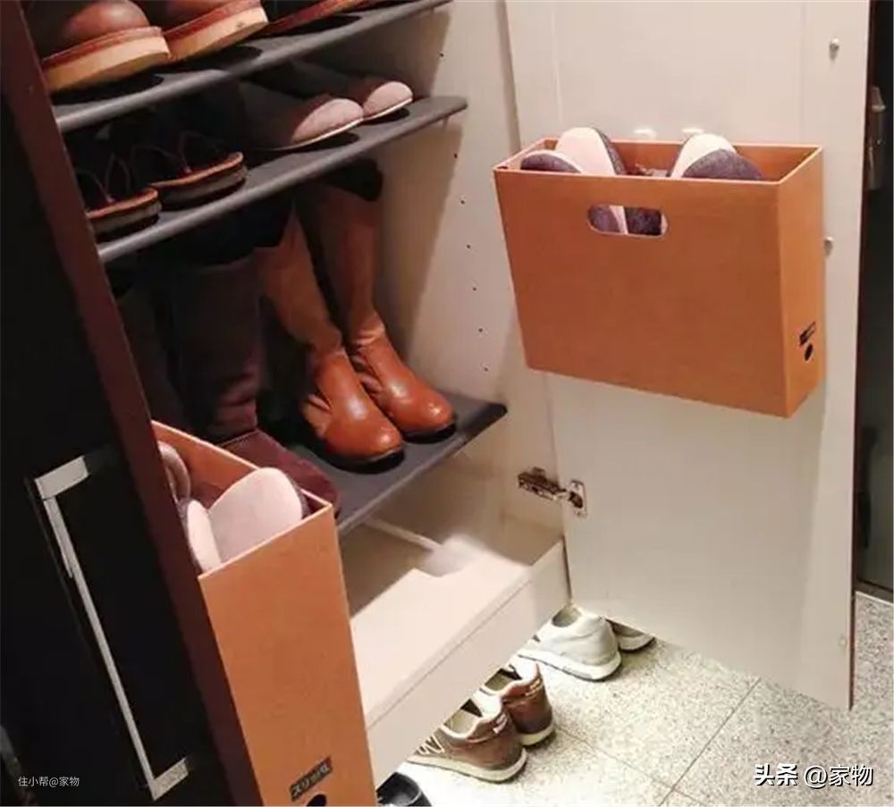 我个人建议是,鞋柜尽量要有300-400mm的深度,如果喜欢连带鞋盒放进去的话,预留400mm的柜内深度一般来说比较合适。