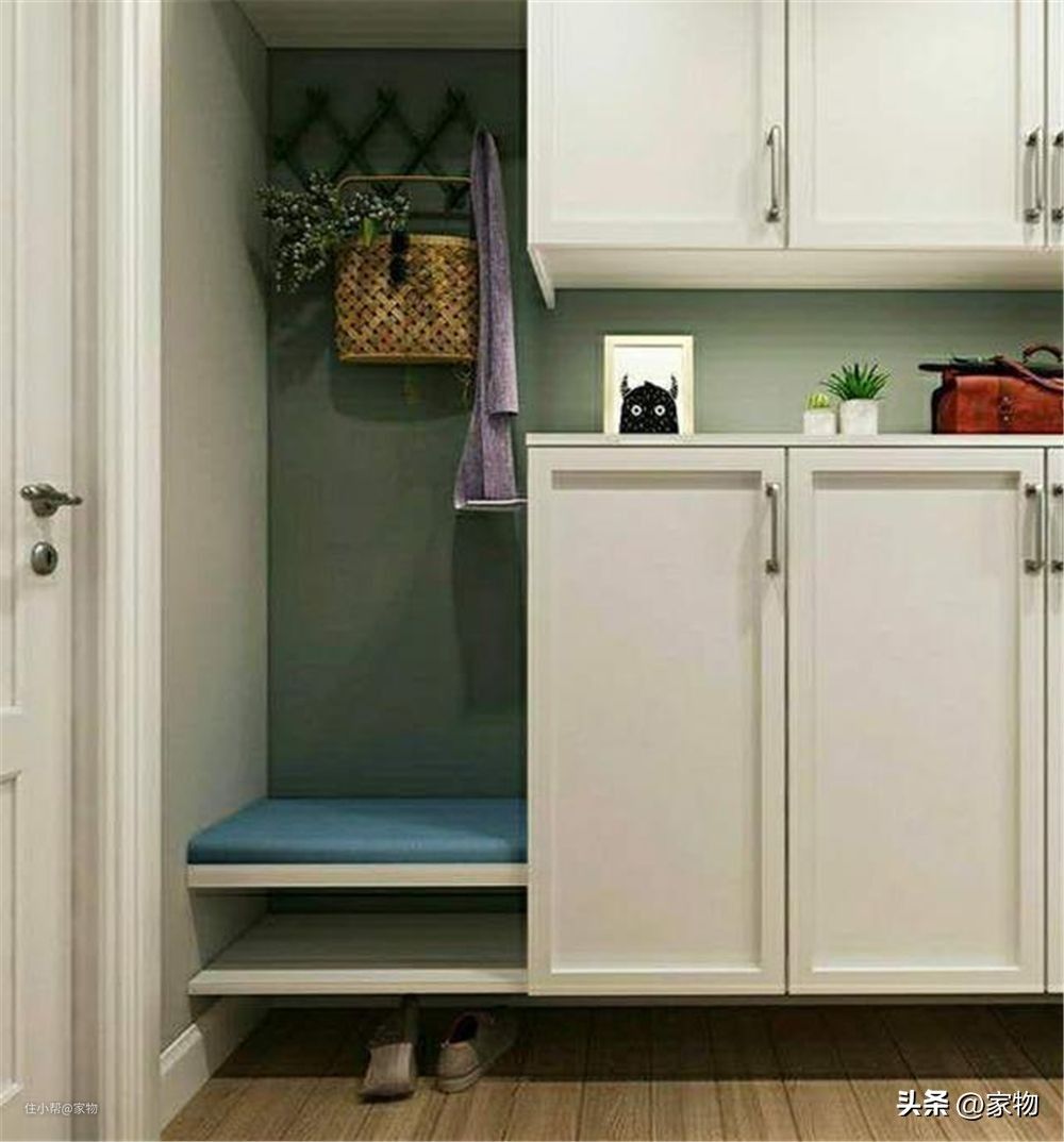 而单独使用换鞋凳,看上去一体感差一些,但柜子就可以多做柜格,如何选择没有定式,还是看大家的习惯偏向了。