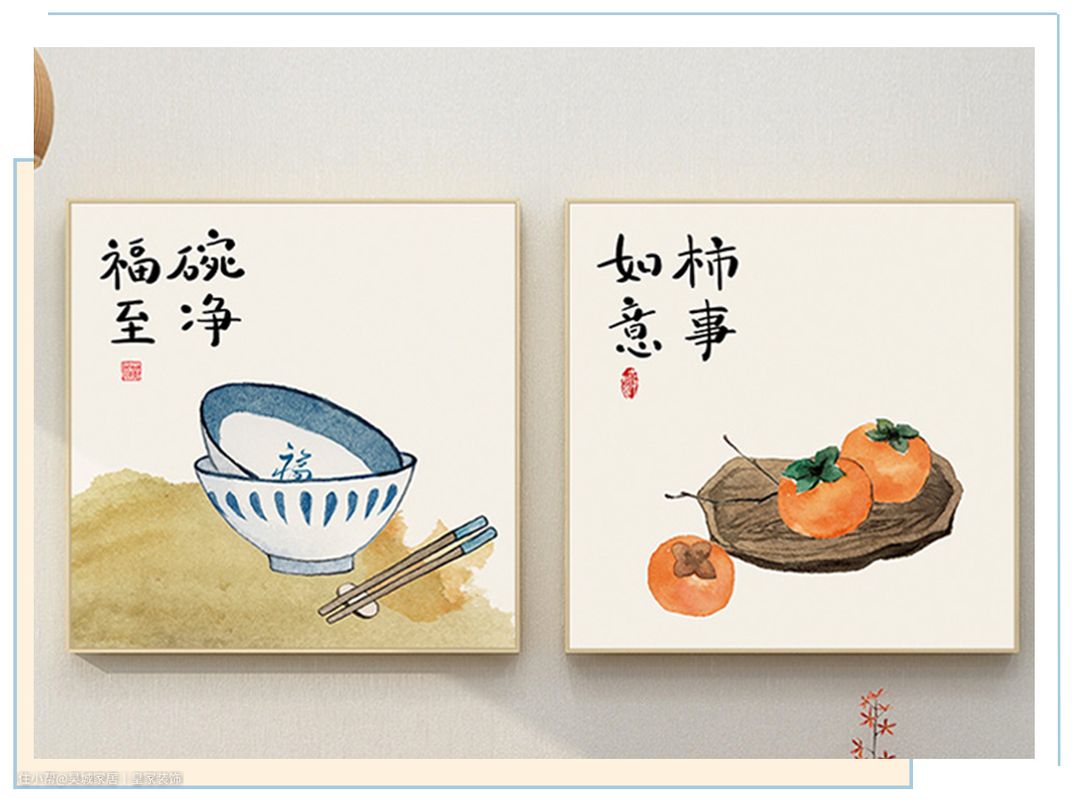 餐厅的装饰应以简单为主,适当地在墙上,添加一些带有中式韵味的装饰物,点缀一下空间即可。