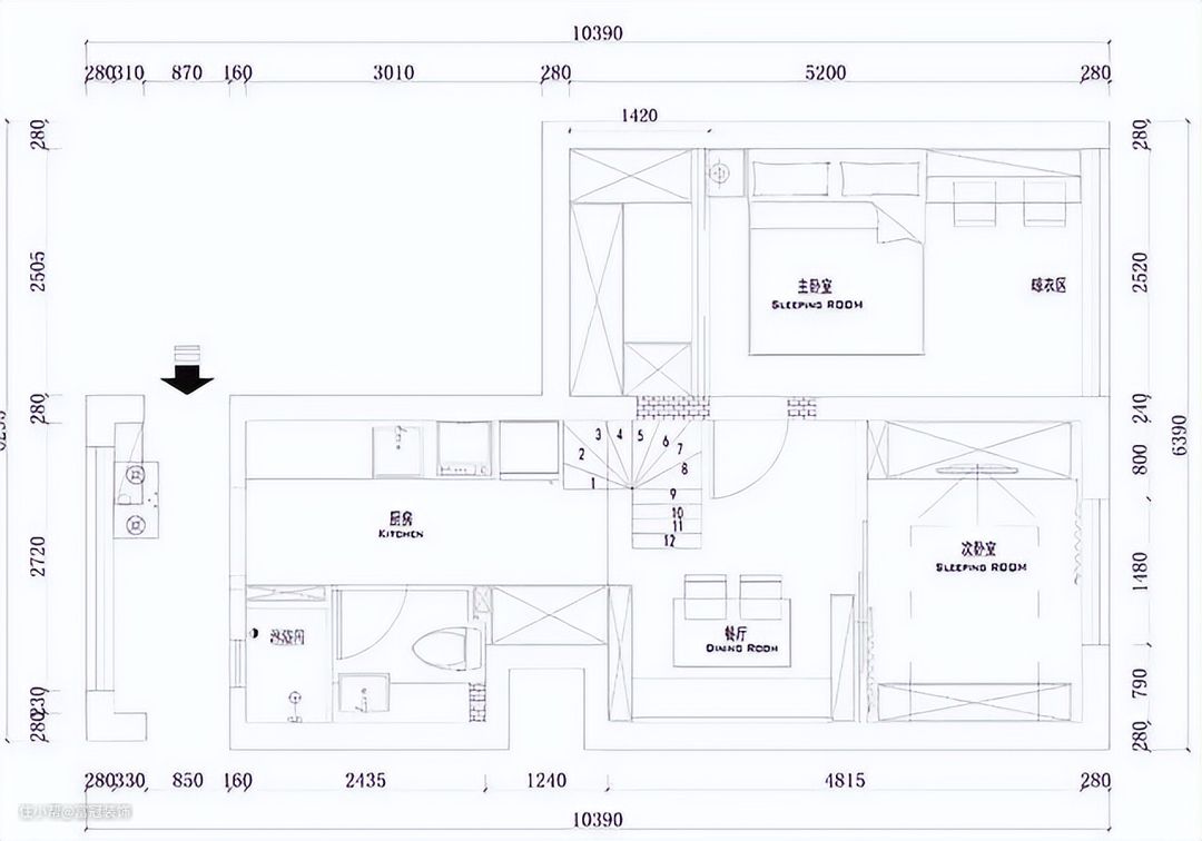 看完了这个23㎡的精致小loft ,下面为大家推荐一套48㎡复式老房,一室变三室。