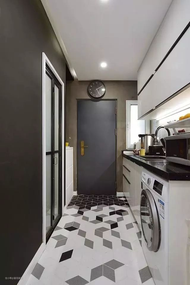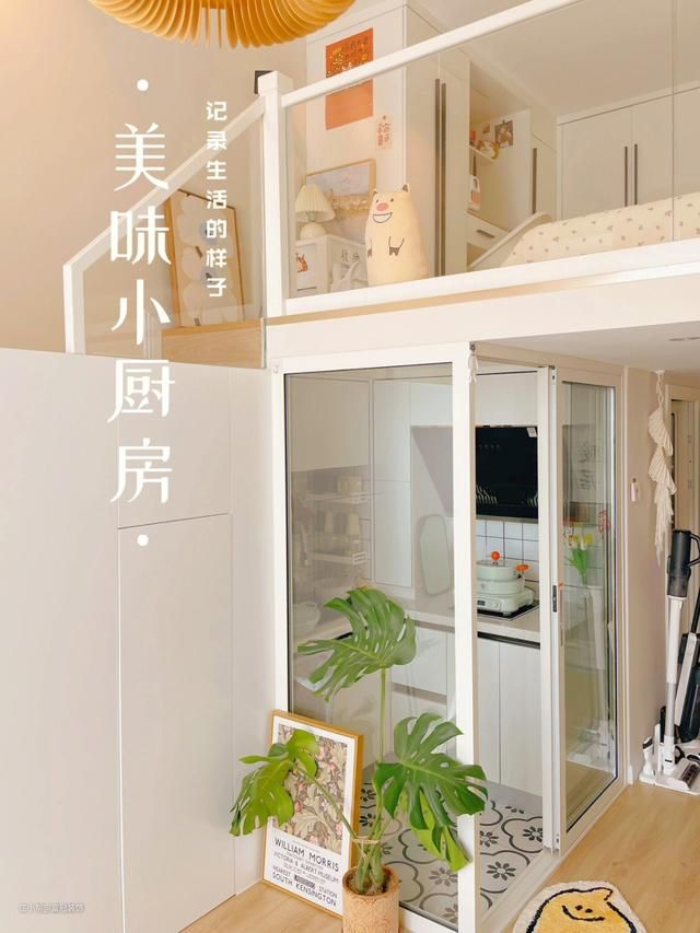 屋主是比较有远见的,小厨房一侧安装了固定式玻璃,另一侧安装了推拉门,颜值比开放式厨房要高,又能隔绝油烟。