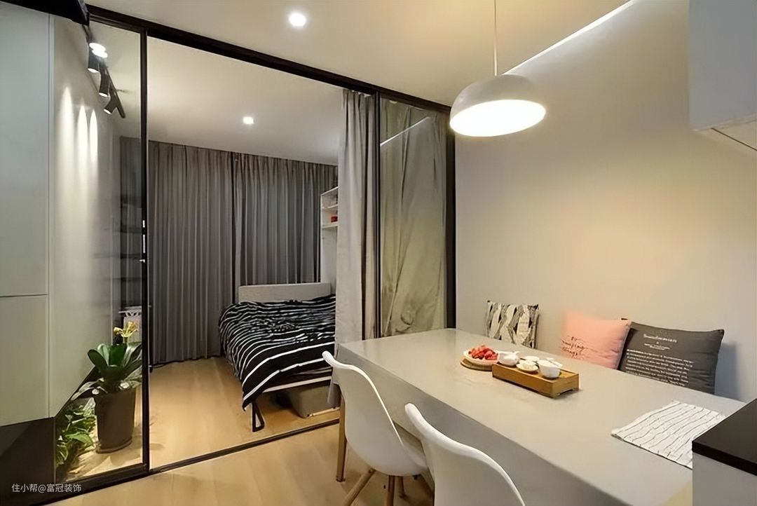 房子很小,看起来并不拥挤。主要原因是装饰简单。店主认为他想在家里安装它。后来发现,简单的空间很大,不必要的家具可以删除。