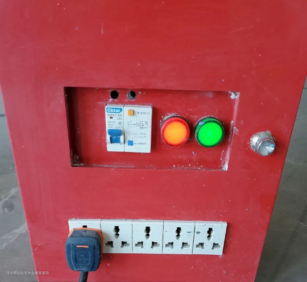 如施工现场无安全插座或施工现场需要连接临时取电点,必须使用安全电箱进行连接,安全电箱要求配备安全开关及漏电保护器,取电必须使用安全插头,电线不允许破皮。