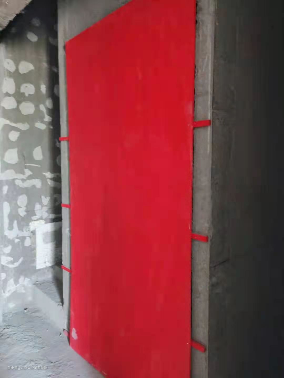 电梯洞口使用木板进行封闭防护,木板必须四周固定牢固,防止施工人员不慎跌落造成人员受伤,木板涂刷大业红,保证室内安全防护颜色统一。