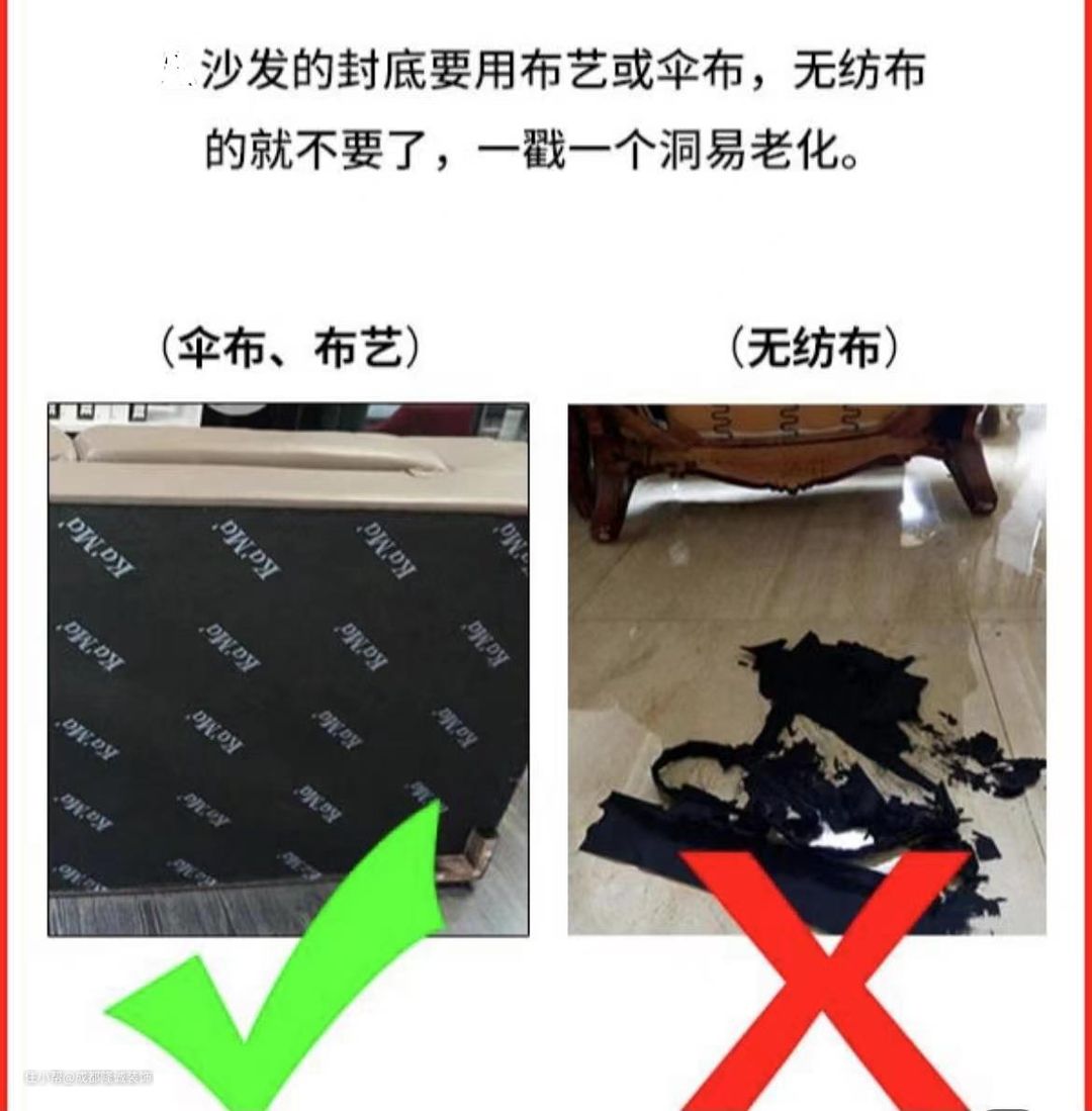 第五种:底部封板或者无纺布封底的沙发不买,挑选蛇形弹簧配绷带的,够弹才够舒服,还有沙发要选布艺封底才更好。