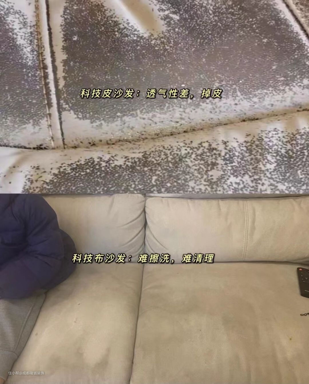 第一种:4000以内的科技布沙发别买,就是在普通的面料上刷了一层三方涂层,低端的科技布老化速度快,很容易爆皮,高端的科技布,有预算还不如选真皮沙发。