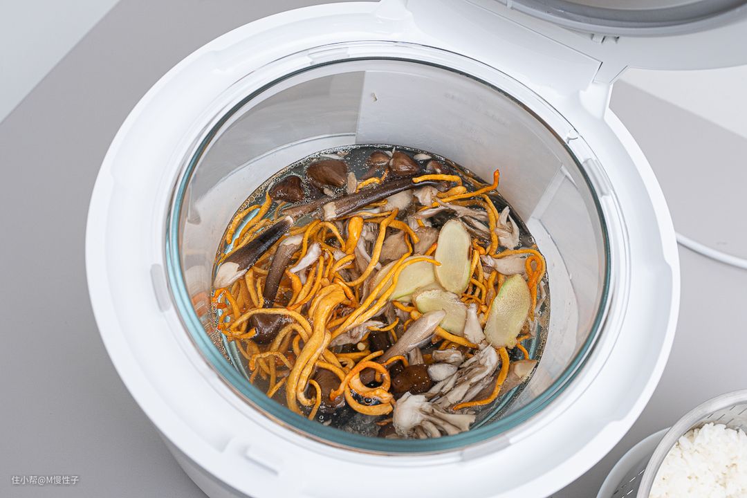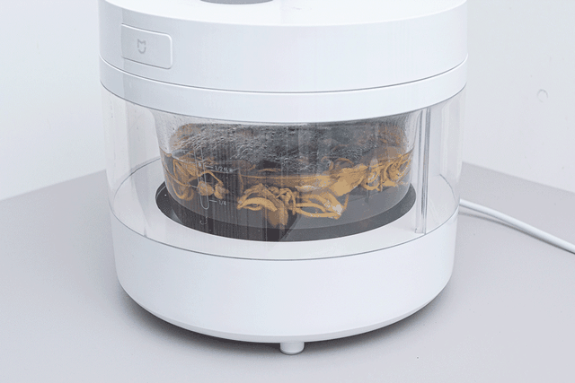 烹饪中,先是大火烧开,再文火慢炖,整体受热均匀,有砂锅炖汤的效果,烹饪中能看到成熟度,如果份量放的和程序不一样,我们可以根据成熟度适当的增加或减少时间。