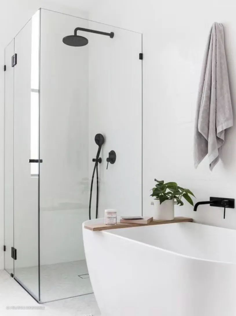 ·当空间较小时,优先采用软隔断,比如浴帘,它适用于各种类型的沐浴区,如矩形、方形、扇形等。但浴帘不能阻挡地面水的外泄,所以在使用时要搭配挡水坎。