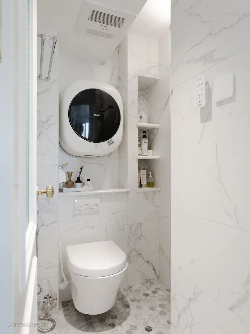 马桶区最好可以预留1-2个点位插座,以防后期改装智能马桶,或是安装壁挂洗衣机、加热毛巾杆时需要使用。