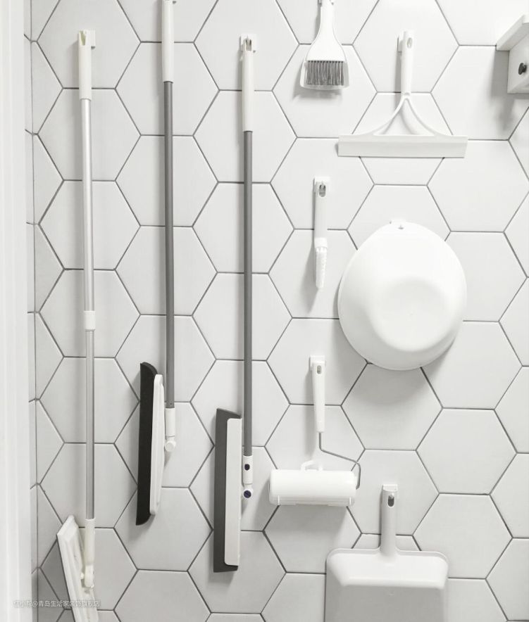 拖把、拖鞋、脸盆最好上墙,可以快速沥干水分,防止受潮,视觉上也十分整体美观。